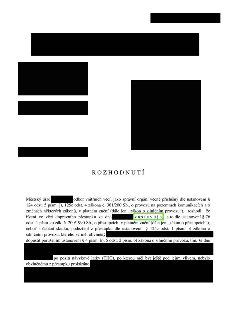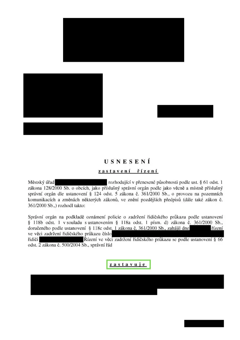 Klientovi byl na základě oznámení policie zahájen postup kvůli zadržení řidičského průkazu a hrozilo mu, že o řidičák přijde ještě před rozhodnutím o přestupku. Díky naší obhajobě úřad řízení o zadržení řidičského průkazu zastavil a klient mohl řidičský průkaz dál používat.